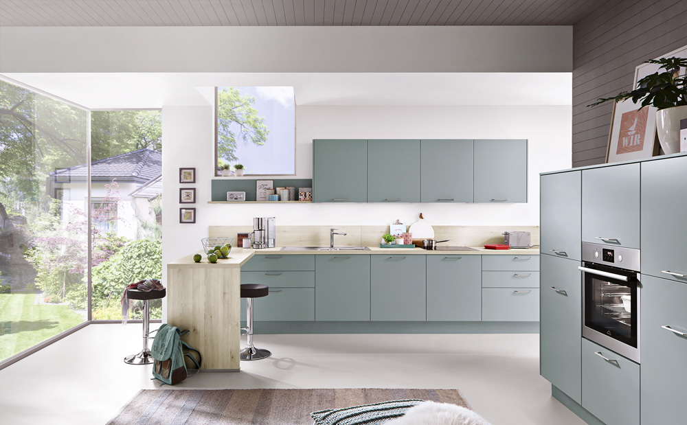 Jemné pastelové odstíny propůjčí kuchyni romantickou atmosféru. Pokud ale zvolíte minimalistické provedení nábytku bez zdobných detailů, bude celek působit příjemně střízlivým dojmem. K pastelovému základu se skvěle hodí černé nebo tmavě šedé doplňky, které dodají kuchyni správný šmrnc.