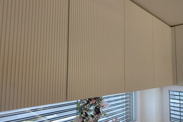 Kuchyňská sestava je v podobě spodních a vrchních skříněk s jemnými barvami, které připomínají kapučíno se smetanou, a to nejen obrazně, ale doslova svými materiály. Vrchní skřínky jsou v odstínu této jemné a lahodné barvy s vysokým leskem. „Na čelní stranu akrylátových dvířek T.acrylic je nalisována 1,4 milimetru silná vrstva akrylátu, která zaručuje velmi hlubokou probarvenost povrchu, díky čemuž je sytost této cappuccino barvy zaručena. Navíc je povrch UV stabilní, a tím barevně stálý, a proto nikdy nevybledne. Praktičnost nábytku v kuchyni podtrhuje jak samotné neviditelné hranění materiálu PUR lepidly, která zajišťují odolnost vůči působení vlhka i tepla až 100 °C, tak možnost opravitelnosti drobných poškození v lesklém povrchu,“ popisuje Martin Dusík, vedoucí obchodního oddělení společnosti Trachea Wood, největšího českého výrobce nábytkových dvířek a pokračuje: „Barevné provedení je cappuccino metalíza, což kromě vysokého lesku znamená ještě sofistikovanější vzhled díky metalickým odleskům.“ Ve stejné barvě navazuje na kuchyňskou linku sestava sahající až ke stropu, kde je umístěna například lednice a úložné prostory.