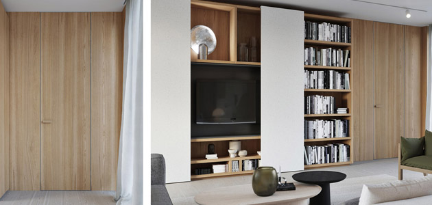 Otočné dveře MASTER, skrytá zárubeň a obklad stěny EFEKTA