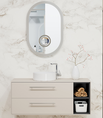 „Řada KVADRO vyniká tenkými liniemi korpusu. K otevřeným nikám i doplňkovým skříním ze stejné kolekce ladí stylové umyvadlo na desku,“ přibližuje Ing. Petr Blažek, ředitel společnosti Dřevojas, tradičního českého výrobce koupelnového nábytku a pokračuje: „Frézovaná čela zásuvek a frézované nohy skříněk definují rustikální řadu ANTIK. Její osobitý styl pak umocňují originální pastelové laky či ruční patina. Skříňky jsou osazeny keramickým umyvadlem Grace s praktickým vyvýšeným okrajem.“