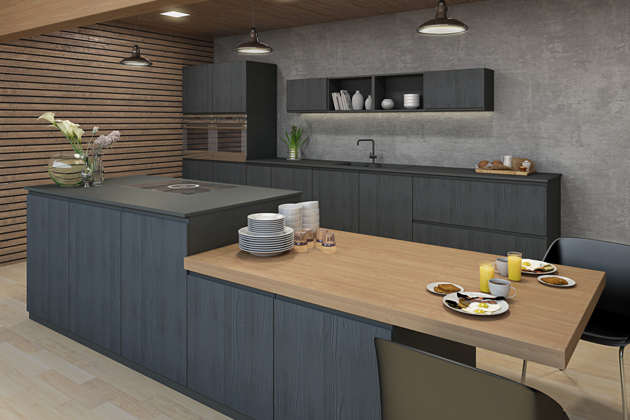 V místech, ve kterých je předpoklad vysoké vlhkosti a častého mechanického namáhání, se proto často upřednostňují imitace přírodního dřeva, které jsou dnes již na velmi vysoké úrovni a na první pohled je od pravého dřeva téměř nelze rozeznat. „Mezi cenově nejdostupnější patří fóliovaná nábytková dvířka, která dokážou dřevo imitovat nejen na pohled, ale díky realistické 3D struktuře také na dotek. Fólie navíc obepíná dvířka i na všech hranách, které jsou v důsledku toho přetažené beze spár a tudíž odolné vůči pronikání vlhkosti do dvířek,“ dává tip Martin Dusík z Trachey. Oblíbenou variantou imitace dřeva je pak také lamino hraněné ABS hranami, u kterých je však důležité, aby byly lepeny PUR a nikoli EVA lepidly. PUR hranění je odolné na přímý styk s vodou, takže zvýšená vlhkost těmto dvířkům vůbec nevadí.