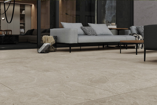 Díky pokročilé technologii digitálního tisku je možné na dlaždice série MIXTONE (RAKO) přenést design velkých přírodních kamenných kvádrů s neuvěřitelnou precizností a autentičností. Tento proces umožňuje, aby každá dlaždice nesla jedinečný vzor, který věrně napodobuje přirozené variace a barevné kolísání charakteristické pro skutečné kamenné kvádry. Náhodné uspořádání vzorů na velkoformátových dlaždicích zajišťuje, že výsledná plocha působí přirozeně a organicky, stejně jako by byla vytvořena z pravého kamene. Pro zajištění maximální autenticity vzhledu je série nabízena v jedné pečlivě zvolené barevné konzistenci. Ta dokonale vystihuje esenci přírodního kamene a umožňuje harmonické začlenění do jakéhokoli interiéru. Dlaždice mají velmi jemný povrch, což znamená, že mají jemný, matný lesk, který podtrhuje jejich sofistikovaný vzhled. Finální povrchová úprava R10/B (ABS) je maximálně příjemná na dotek, což zvyšuje uživatelský komfort a přispívá k luxusnímu pocitu. Série nabízí také venkovní dlaždice MIXTONE OUTDOOR, díky jejich univerzálnímu designu a odolnosti můžete snadno vytvořit plynulý přechod mezi vaším domovem a zahradou. Keramické dlaždice od RAKO, MIXTONE, nabízejí vzhled přírodního kamene, přitom bez kompromisů v oblasti udržitelnosti nebo praktičnosti.