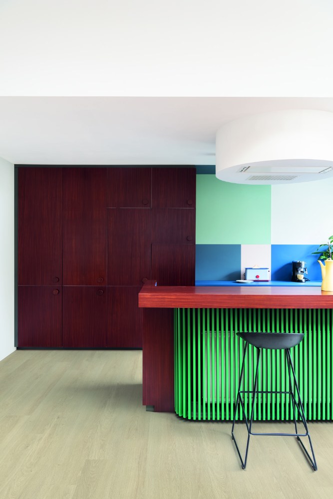 Tato produktová řada belgické společnosti Quick-Step je jako stvořená pro renovace, jelikož prkna můžete jednoduše položit dokonce přímo na stávající podlahu. Starý pokoj na nový, hipstersky retro interiér, tak přeměníte v cuku letu.