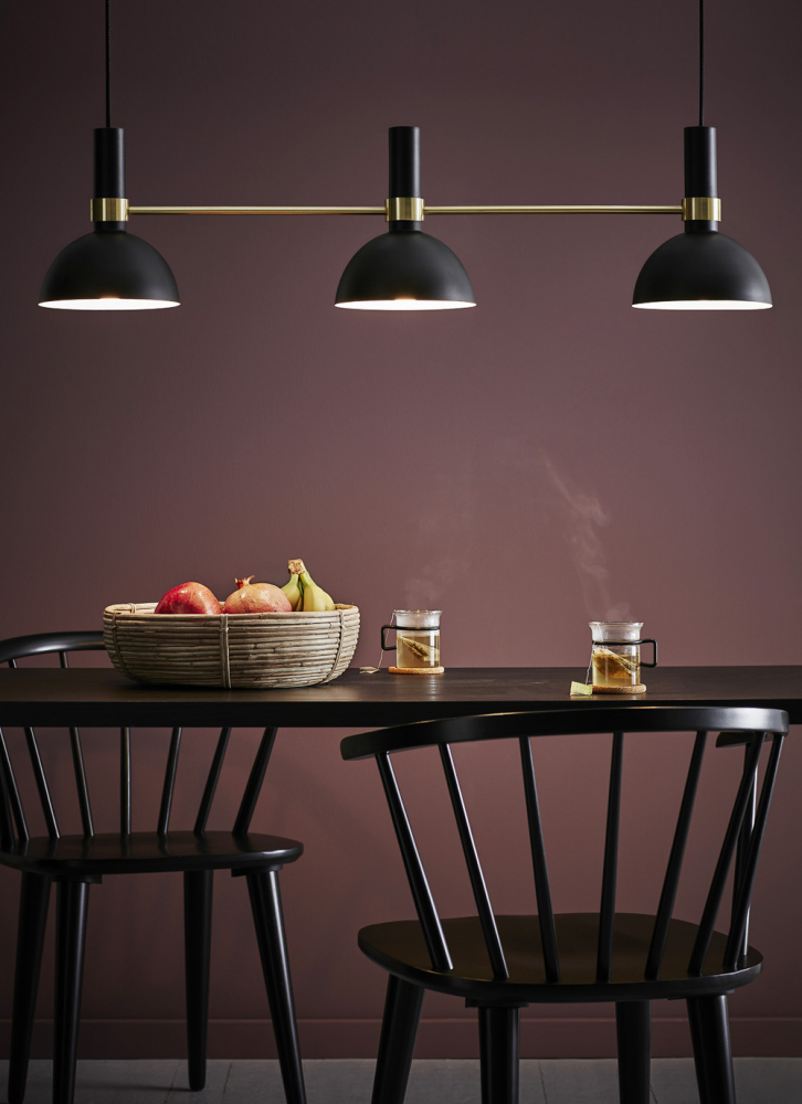 - Závěsná lampa by měla osvětlovat celou plochu jídelního stolu. Nad větší stůl je vhodnější pořídit více menších závěsných lamp v řadě, které poskytnou dostatek světla po celé jeho délce.