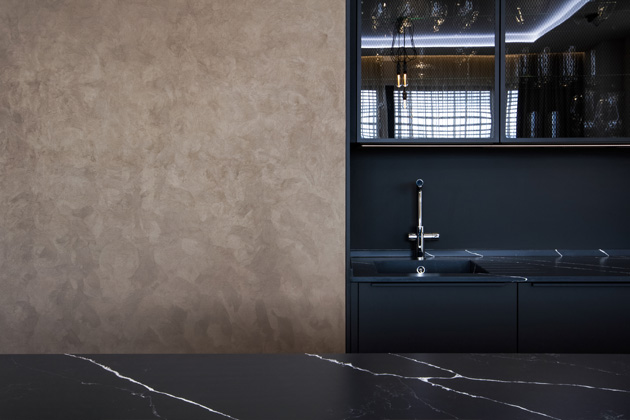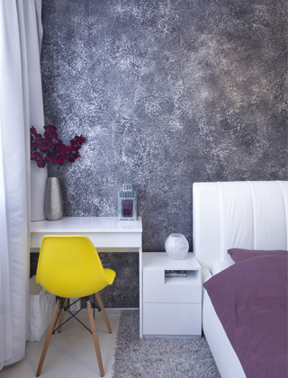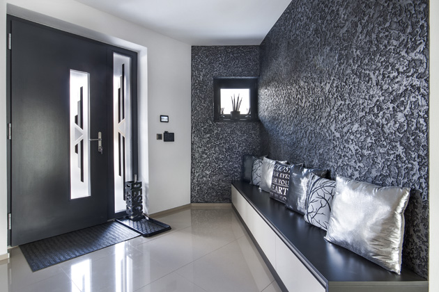 Stěrka Granite je velice dominantní a výrazně strukturovaná. Ideální pro krb, obývací pokoj, nebo předsíň.