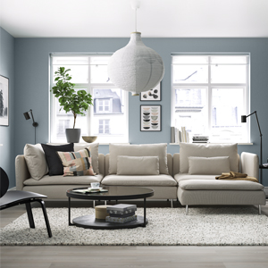 Foto: IKEAČtyřmístná pohovka Söderhamn s lenoškou (IKEA) s látkovým potahem Fridtuna,