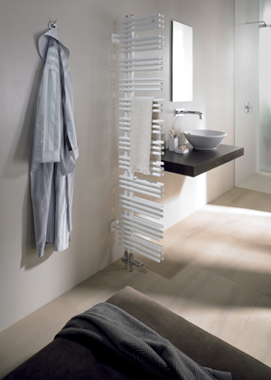 Dnešní koupelnové radiátory už nemusí sloužit výhradně k vytápění a sušení ručníků, ale zvládnou zastat i roli šikovné příčky! „Některé modely radiátorů umožňují kromě rovnoběžného zavěšení na zeď kotvení i kolmo ke stěně. Toto řešení má kromě optického předělu koupelny i praktické opodstatnění – pokud je radiátor instalovaný například mezi umyvadlo a vanu, umožňuje přístup k ručníkům a osuškám z obou stran,“ popisuje Ing. Miroslav Váša, produktový manažer pro oblast designových radiátorů Zehnder, a pokračuje: „Pokud navíc zvolíte otopné těleso s asymetrickým uspořádáním topných trubek, které jsou umístěné zboku svislého sběrného potrubí, zavěšení ručníků bude ještě snazší – stačí je jednoduše nasunout ze strany. To umožňují například radiátory Zehnder Yucca Asym nebo Zehnder Roda v otočném modelu Twist Spa.“