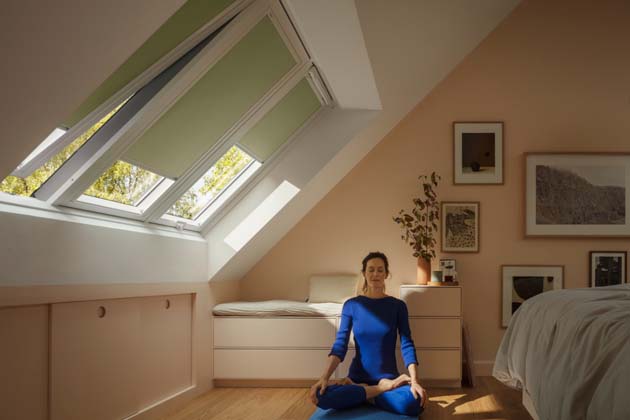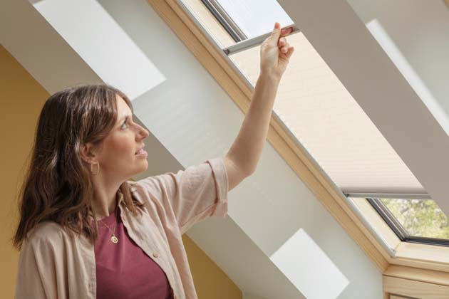 Lehká venkovní roleta VELUX zatemní a udrží příjemné klima