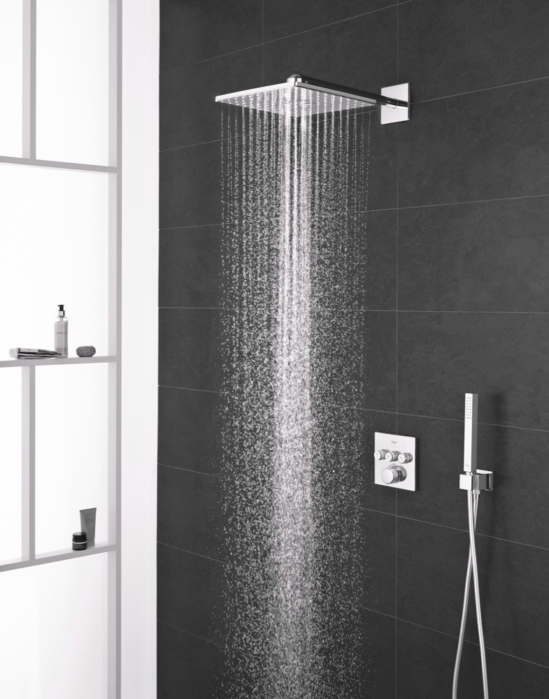 Hlavové sprchy upevněné na horní části sprchové tyče, na stěně nebo zapuštěné do stropu jsou ideální pro očistu celého těla, která může být spojená i s relaxací pod tekoucí vodou. Jakkoli tomuto odpočinku stoupající ceny vody moc nenahrávají, stále jde o úspornější způsob, než představuje například koupel ve velké vaně. Úsporám vody jdou vstříc i provzdušňovací systémy, které dokážou při zachování pocitově dostatečného sprchového oplachu vyplýtvat mnohem méně vody. Komfort pod sprchou umocňují různé typy proudu vody od hustého tropického deště až po velmi jemné mrholení. Kromě hlavových sprch standardního rozměru se těší oblibě i velkoformátové modely, které umožňují pohodlné sprchování ve dvou.
