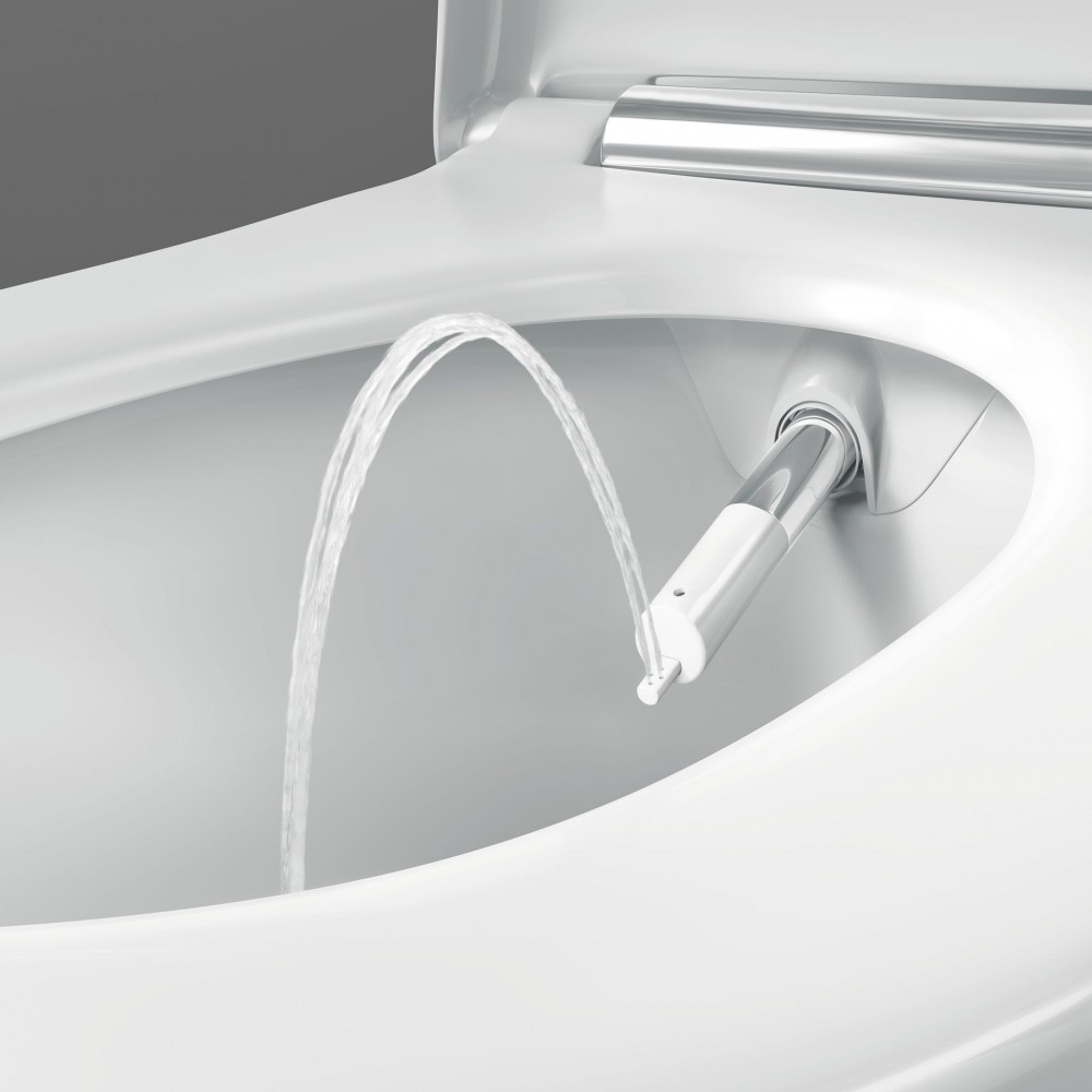 Technologie sprchování WhirlSpray zabezpečuje důkladnou a zároveň úspornou očistu vodou. Sprchovací proud je zjemněný dynamickým provzdušněním. Pomocí dálkového ovládání je možné nastavit polohu sprchovacího ramene přesně podle osobních preferencí. Zároveň je možné aktivovat oscilační funkci sprchování pro ještě důkladnější očištění.