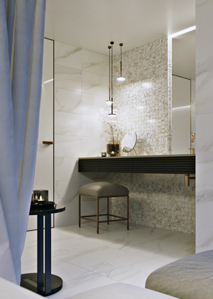 Dlaždice Statuario (Cifre), imitace mramoru, odstín pulido, 60 × 120 cm, cena 919 Kč/m2, www.koupelny-ptacek.cz