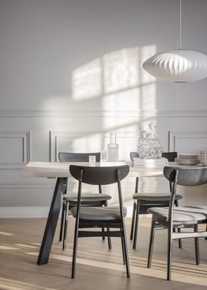 Základem každé domácnosti je jídelní stůl, jehož velikost se většinou odvíjí od počtu členů rodiny. Široká nabídka jídelních stolů a židlí z různých materiálů umožňuje přizpůsobit vzhled jídelního koutu rozmanitým stylům i individuálním estetickým představám. Při výběru je třeba vzít v úvahu i ergonomii.