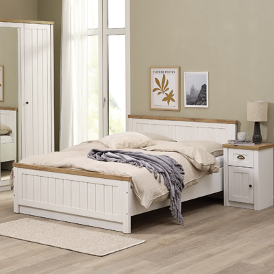 Z bílého borovicového dřeva je postel Torino, 180 × 200 cm, cena 11 599 Kč, www.bonami.cz
