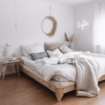 Postelí laděnou do nejrůznějších odstínů bílé barvy rozhodně nic nezkazíte. Neutrální bílá se vám bude dobře kombinovat s dalším nábytkem. Bílá barva vám také zajistí klidné a vyrovnané prostředí při usínání. Aby nepůsobila chladně a sterilně, doplňte ji dřevem a textilem v teplých barvách a dekorech.