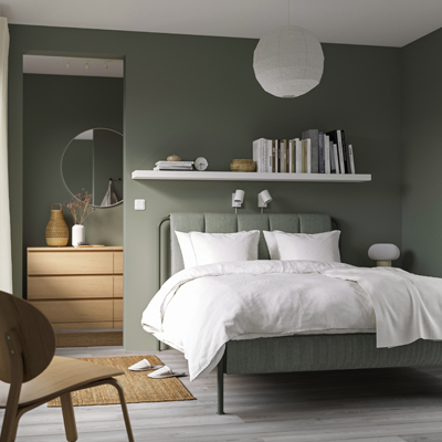 Foto: IkeaČalouněný rám postele s matrací Tällåsen (IKEA), 180 × 200 cm, cena 20 180 Kč,