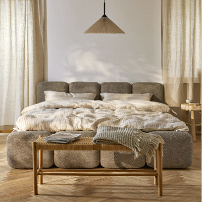 Foto: WestwingČalouněná postel z plyšového buklé Tayla (Westwing Collection), 180 × 200 cm, cena 35 179 Kč, www.westwing.cz