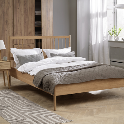 Foto: JyskPostelový rám z masivního dubu Stubberup, 160 × 200 cm, cena 7 999 Kč, www.jysk.cz