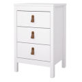 Foto: MeridianiNoční stolek Real z bílého lamina s koženými úchytkami, cena 2 990 Kč, www.aga-nabytek.cz