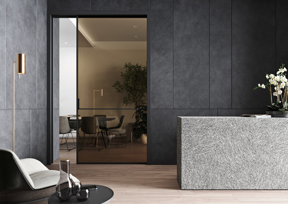 Atypické stavební pouzdro PURE. Šířka otvoru je až 2000 mm a výšku si drží v úctyhodných 2700 mm.