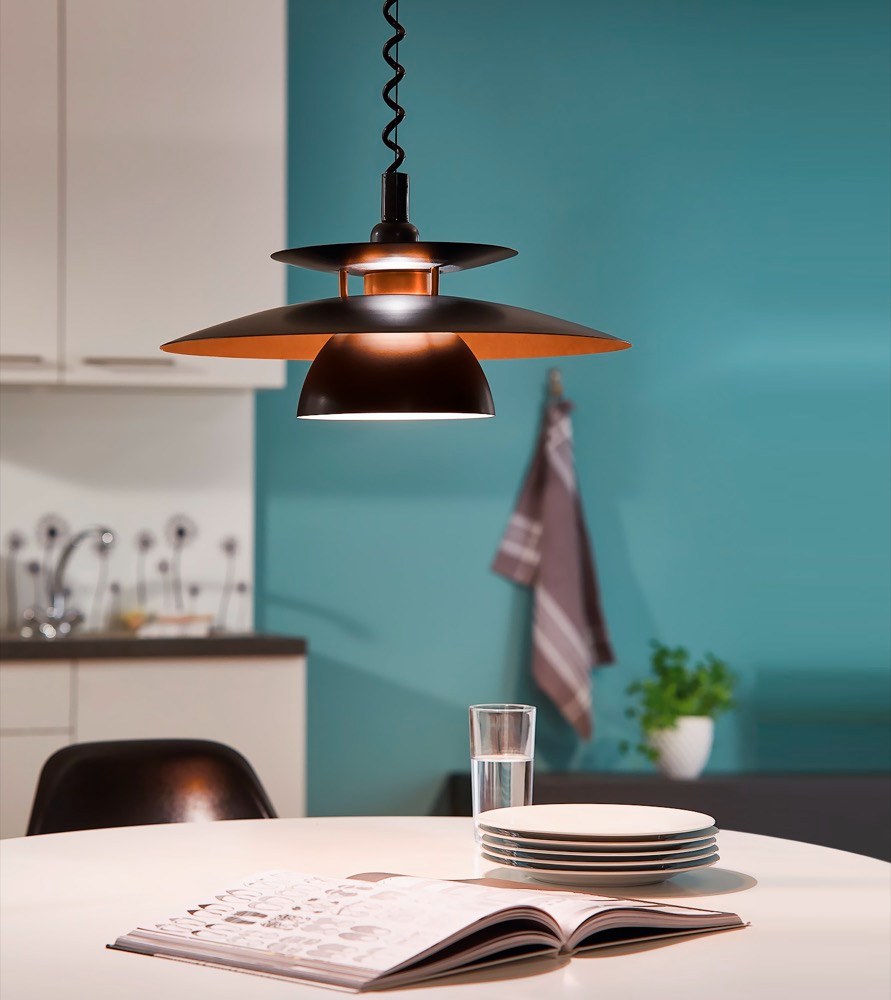 Často jsou prvním svítidlem, které řešíme. V místnostech s vysokými stropy mohou kromě své primární funkce odvádět pozornost právě od výšky místnosti a opticky ji snížit. Umístěná nad jídelním stolem by měla osvětlovat celou plochu stolu tak, aby nepřekážela a zdroj světla neoslňoval.