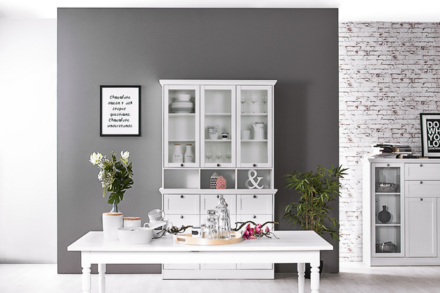 Do jídelny se určitě bude hodit příborník, vitrína, kredenc či jiná hezká skříňka, která prostor náležitě pozvedne a zároveň nabídne praktické úložné místo pro nádobí či vystavení dekorací.