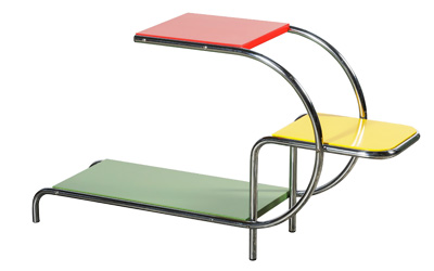 Foto: Slezákovy závodyKvětinový stolek (Slezákovy závody) ve funkcionalistickém stylu, kov a dřevo, cena na dotaz, www.slezakovyzavody.cz