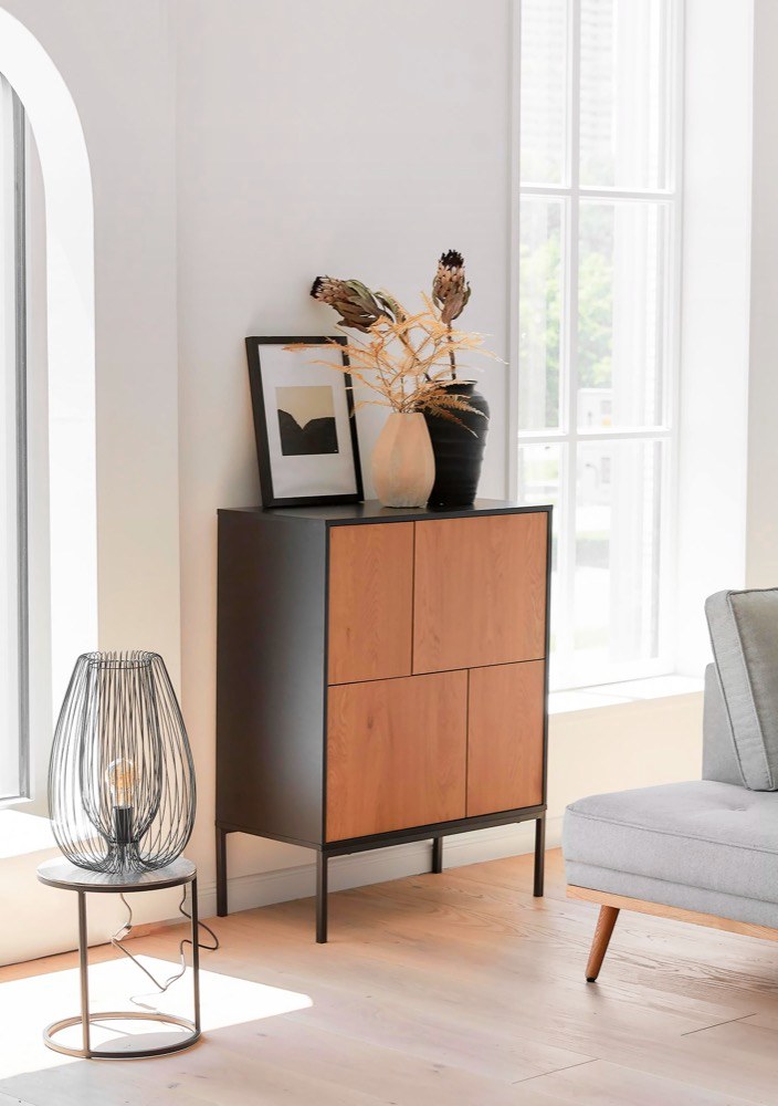 Obývací komody s uzavřenými policemi a zásuvkami nabízejí mnoho úložného prostoru a ukryjí vše, co nemá být na první pohled vidět.
