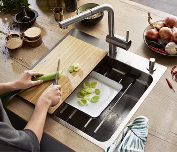 Zvyšující se nároky na funkčnost kuchyňského vybavení jsou patrné i u dřezů a baterií, do jejichž provedení se promítají netradiční materiály, atypické tvary i nové funkce. Dřez už není jen ryze funkčním prvkem, nýbrž i estetickým objektem.