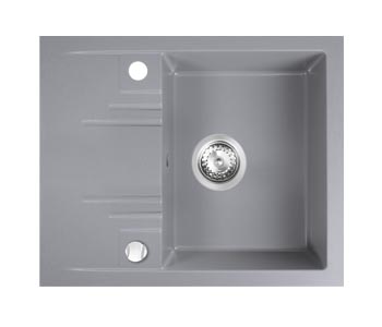 Dřez s odkapávací plochou (Novaservis), materiál granit, 58 × 48 cm, excentrické ovládání, cena 5 499 Kč, www.novaservis.cz