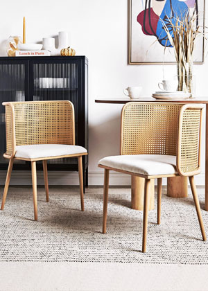Foto: Beliani.czSada dvou židlí Kobuk s vídeňským výpletem na opěráku, maximální nosnost 120 kg, cena 3 849 Kč, www.beliani.cz