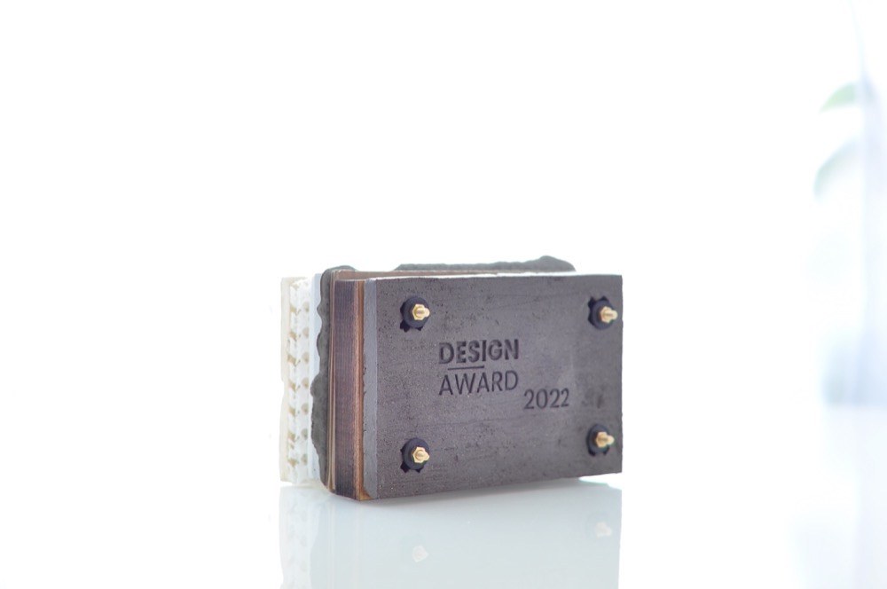 Cenu prvního ročníku DESIGN-AWARD 2022 navrhnul a realizoval ji MgA. Michael Franče. Symbolizuje „propojení různých materiálů, s kterými by dobrý designér měl umět pracovat při své tvorbě“. V tomto „sendviči“ tak letos můžete najít keramiku, plexy, 3D tisk, porcelán, karton, beton, mosaz … (foto)