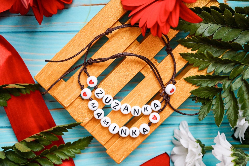 - Jména a vzkazy – šikovnější děti, které už umí první slova, mohou navlékat jména na náramky nebo náhrdelníky. Buď ta svá, pro sourozence, rodinu nebo kamarády. Ti zdatnější mohou z písmenkových korálků dokonce napsat i navlečený vzkaz. Taková slova jako „mám tě rád“ si každý dojatá miminka ráda nechá na alespoň přes prázdniny na sobě. „Miluju moře“ zas bude připomínat letní dobrodružství po celý rok.