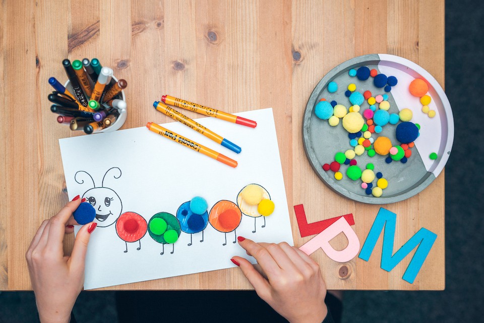 Co si tak s nejmenšími o prázdninách občas zopakovat barvy? Koukejte kolem sebe, kolik jich najdete. Barevnou housenku můžete mít ale rovnou na stole. Když bude venku pršet, barvy duhy vám rozsvítí den. Na papír nakreslete housenku – její tělíčko se skládá z koleček nakreslených vedle sebe. Dlouhá může být dle libosti a počtu barevných pastelek nebo fixů, které máte k dispozici. Každé kolečko vybarvěte jinou barvou. Na stůl nebo do misky vedle vysypejte pytlík barevných bambulek. Bambulky můžete skládat podle barev do příslušných koleček a pak je sfouknout a nechat na později. Nebo si housenku rovnou pěkně ozdobte, barvené kuličky na housenku nalepte.