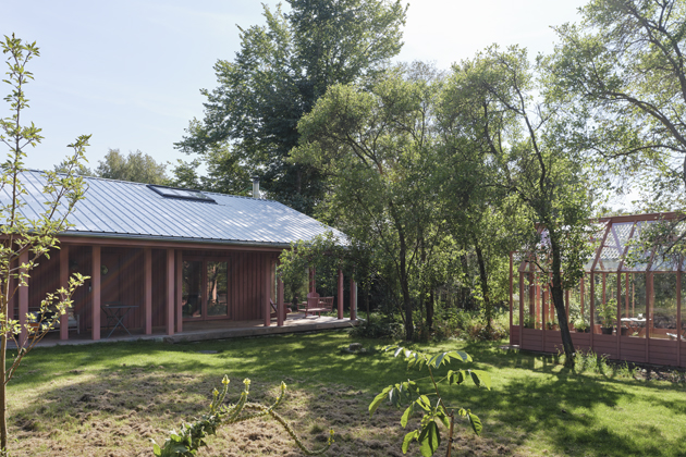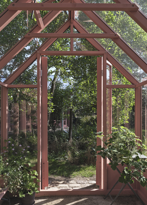 Samostatný dům pro hosty není nutné vytápět, když se nepoužívá, a nemá ani vodoinstalaci, proto nevyžadoval stavební povolení. Zatímco Martin pracoval na získání stavebního povolení pro hlavní budovu, Christoffer podle jeho plánů postavil dům pro hosty. A také na jižním okraji pozemku skleník, středně velkou variantu z vlastní produktové řady The Greenery.
