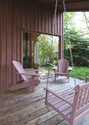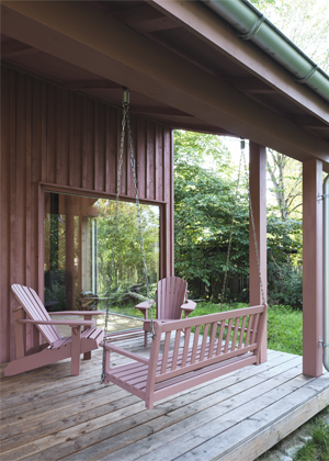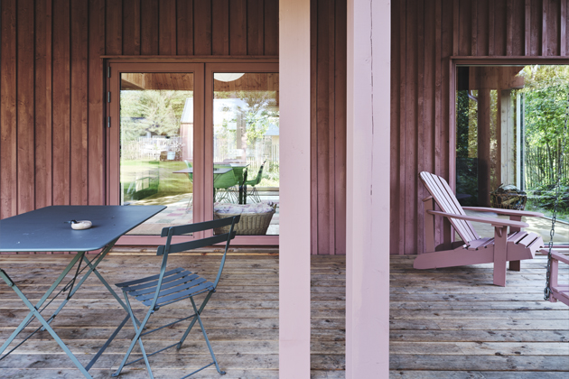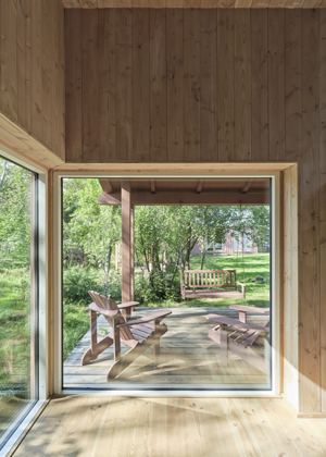 Na poslední chvíli byly provedeny změny i na verandě. Přestože byla od počátku stěžejní součástí návrhu, Martin a Christoffer později rozhodli o umístění každého sloupu a sami je i vztyčili. Martin trval na použití celých kmenů stromů, o kterých Christoffer zpočátku pochyboval, ale později byl za toto řešení rád: „Když jsme postavili sloupy z kmenů stromů, veranda se proměnila ze struktury podobné přístřešku pro auta v něco poetického, organického a krásného." A architekt Martin Kallesø souhlasí: „Veranda se svými stromovými sloupy promění skromný dům v něco pozoruhodného."