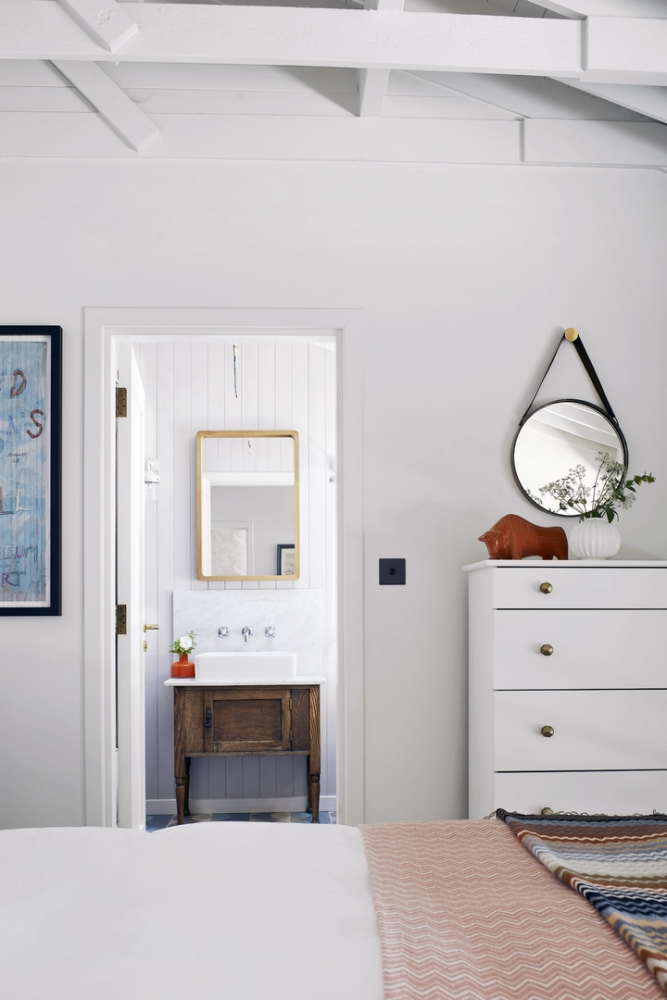 V zadní části chaty je umístěná jedna dvoulůžková ložnice s koupelnou a okny vedoucími do lesa. Druhá koupelna s posuvnými skleněnými dveřmi je u ložnice s okny směrem k jezeru. U obou ložnic jsou koupelny vybavené klozetem, k dispozici tu je i pračka a sušička.