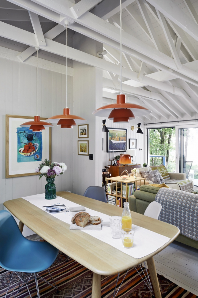 Řešení se opírá o jednoduchost a styl, ve kterém se citlivě prolínají rustikální prvky s minimalistickými a společně vytvářejí příjemně zateplenou atmosféru. Návštěvníci tu mají k dispozici kuchyňskou část s jídelním stolem, obývací prostor, dvě ložnice a terasu situovanou po šířce domu směrem k jezeru.