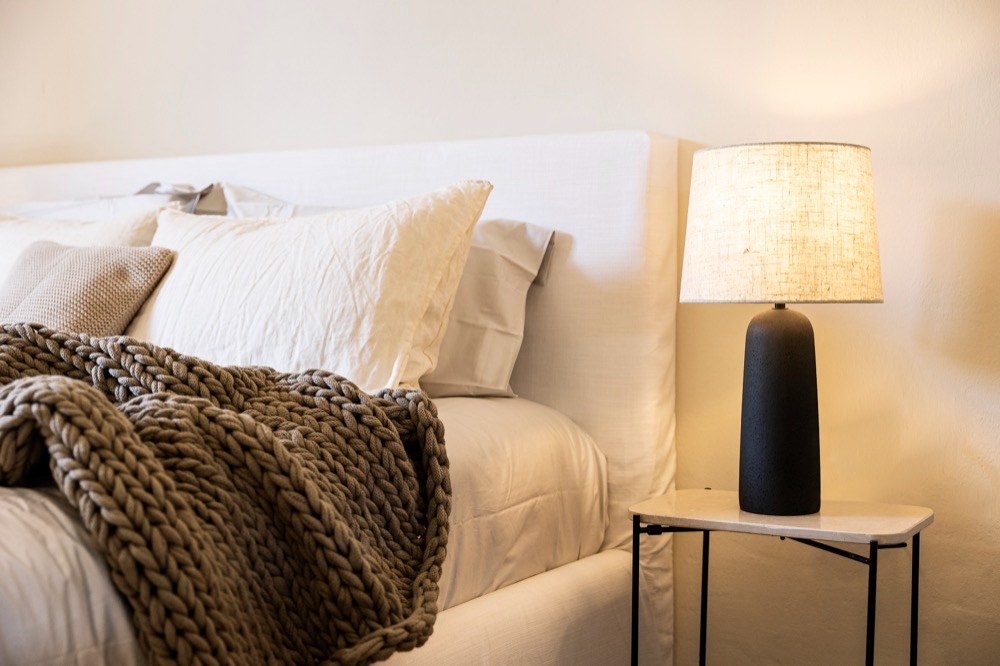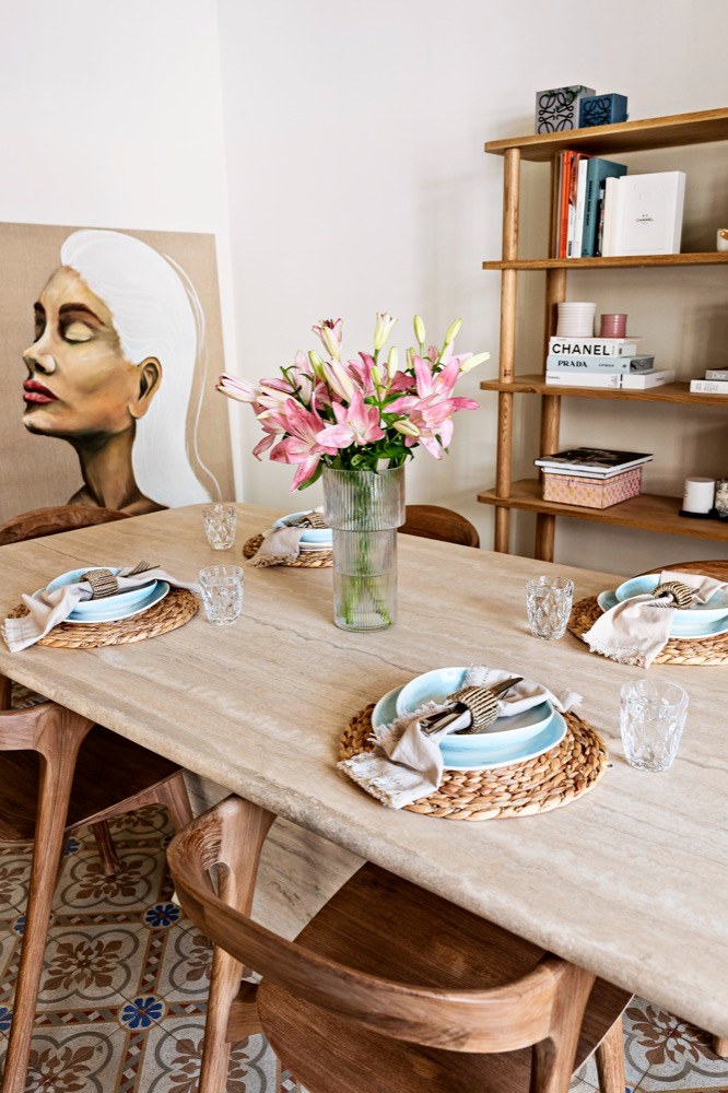 Miluji masivní dřevo, a to většinou ve světlých odstínech. Alespoň v tomto případě jsem zvolila světlé materiály tak, jak se mi zdá, že si to byt žádá – bílé stěny, nekonečné světlo. Chtěla jsem, aby to tak zůstalo, a také si myslím, že světlé barvy působí dojmem většího prostoru. Pokud jde o textilie, moje oblíbená jsou přírodní vlákna, jako je len, rafie. Vždy volím tyto možnosti.