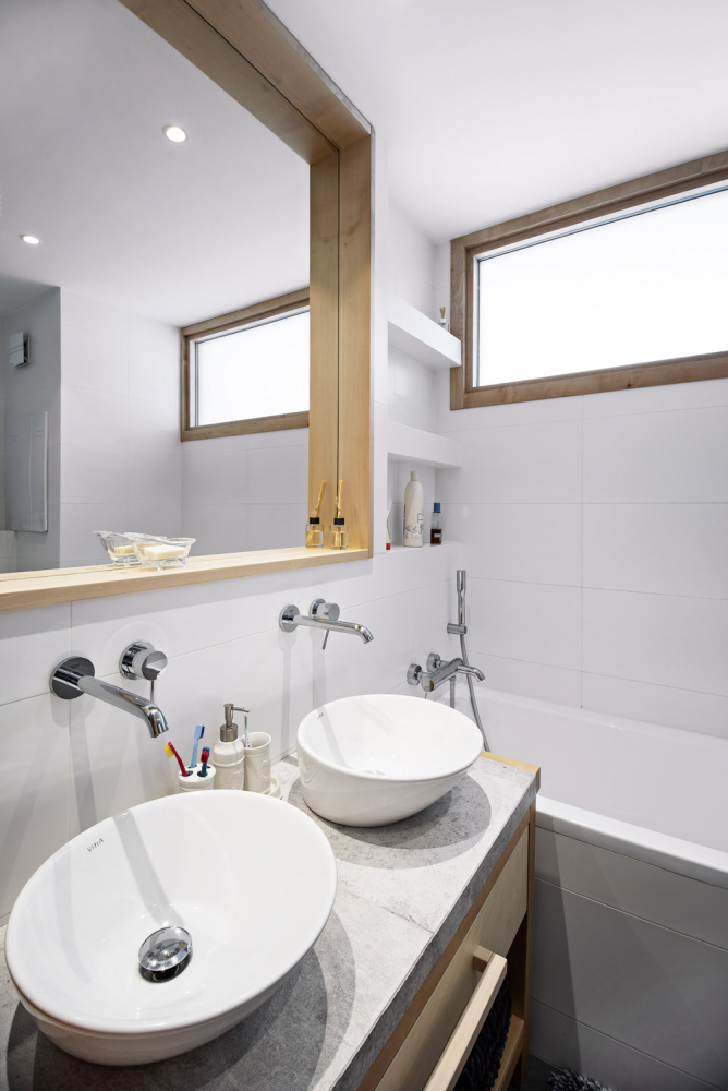 Dcera se synem závodně lyžují, rodiče jsou zapálenými lyžaři, a tak celá čtyřčlenná rodina přizpůsobila svůj život tomuto sportu. Protože se ale nechtěla úplně vzdát bydlení ve městě, rozhodla se trávit zimní sezónu na horách a léto a podzim v metropoli.