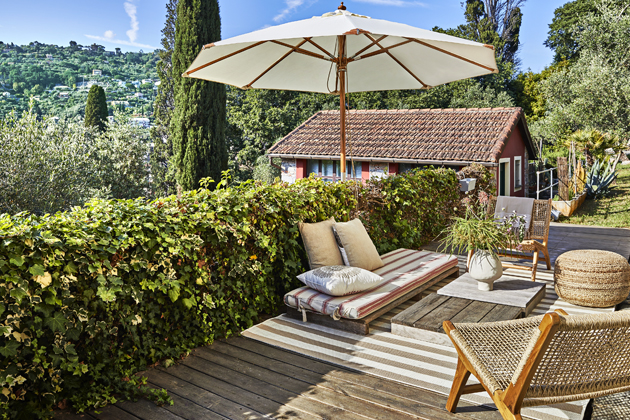 Zahrada je základní součástí domu, protože život se tu odehrává hlavně venku. Nechceme, aby byla příliš přešlechtěná, dáváme přednost přirozenosti. Roste tady spoustu olivovníků a od letošního roku máme velkou zeleninovou zahradu. Máme také terasu, kterou jsme zařídili jako venkovní obývací prostor s kobercem a slunečníkem, a stala se tak součástí obývacího pokoje. Pro mě je ideální v rekreačních domech mít venkovní prostory, které vám umožní využít prostor co nejvíce. Jakmile se sem dostanu z města, chci si odpočinout na zahradě, číst si knížku a odpočívat. Zkrátka venkovní část domu je to, co miluji nejvíc.