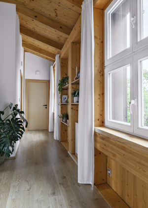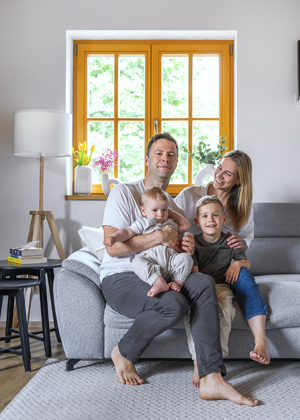 Netradiční prosvětlený a dřevem vonící dům je už celý rok útulným domovem mladé čtyřčlenné rodiny. A právě rodina sehrála hlavní roli v tom, že dům stojí a tak pěkně vypadá.