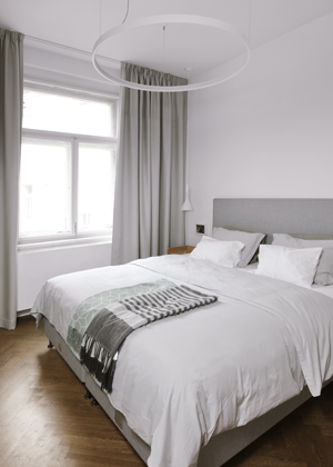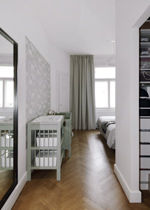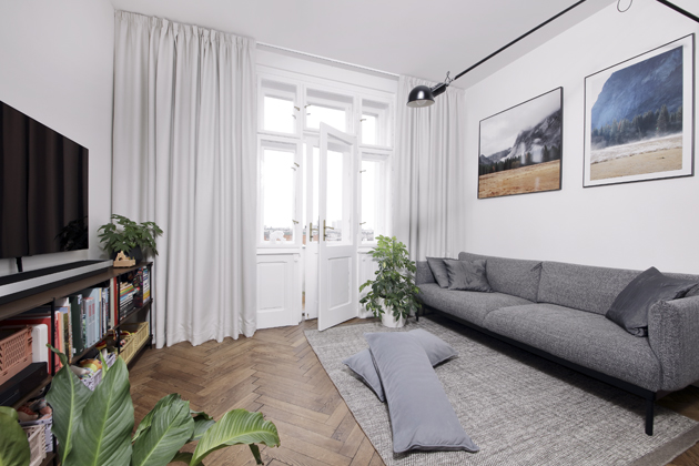 Zařizovat vlastní bydlení bylo prý pro architektku v mnoha ohledech náročnější než práce pro klienta. Některá rozhodnutí byla jasná, jiné volby potřebovaly svůj čas. Do bytu se nastěhovala, když byla svobodná, později ho obývala s manželem a nyní i s malou dcerou. Je tedy přirozené, že se interiér postupně proměňuje. Každopádně se ale architektka snaží, aby si byt stále zachoval ducha historické zástavby a aby nové moderní zařízení hezky navazovalo na původní prvky, které se v něm dochovaly.