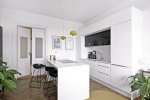 Když si architektka byt na pražských Vinohradech před jedenácti lety koupila, byl v původním stavu, takže jí bylo jasné, že bude nutno udělat důkladnější rekonstrukci. Byt má jen 53 metrů čtverečných, a aby dávala dispozice větší smysl, rozhodla se architektka původní kuchyň přemístit do většího pokoje a na její místo situovat ložnici.
