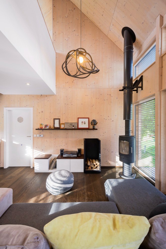 Konstrukce: svislá nosná konstrukce – velkoformátové komponenty lepené z masivního smrkového dřeva (systém NOVATOP SOLID). Obvodové stěny a vnitřní ztužující příčky – dřevěné panely NOVATOP SOLID. Střecha/krokve – KVH řezivo s vloženou minerální izolací.