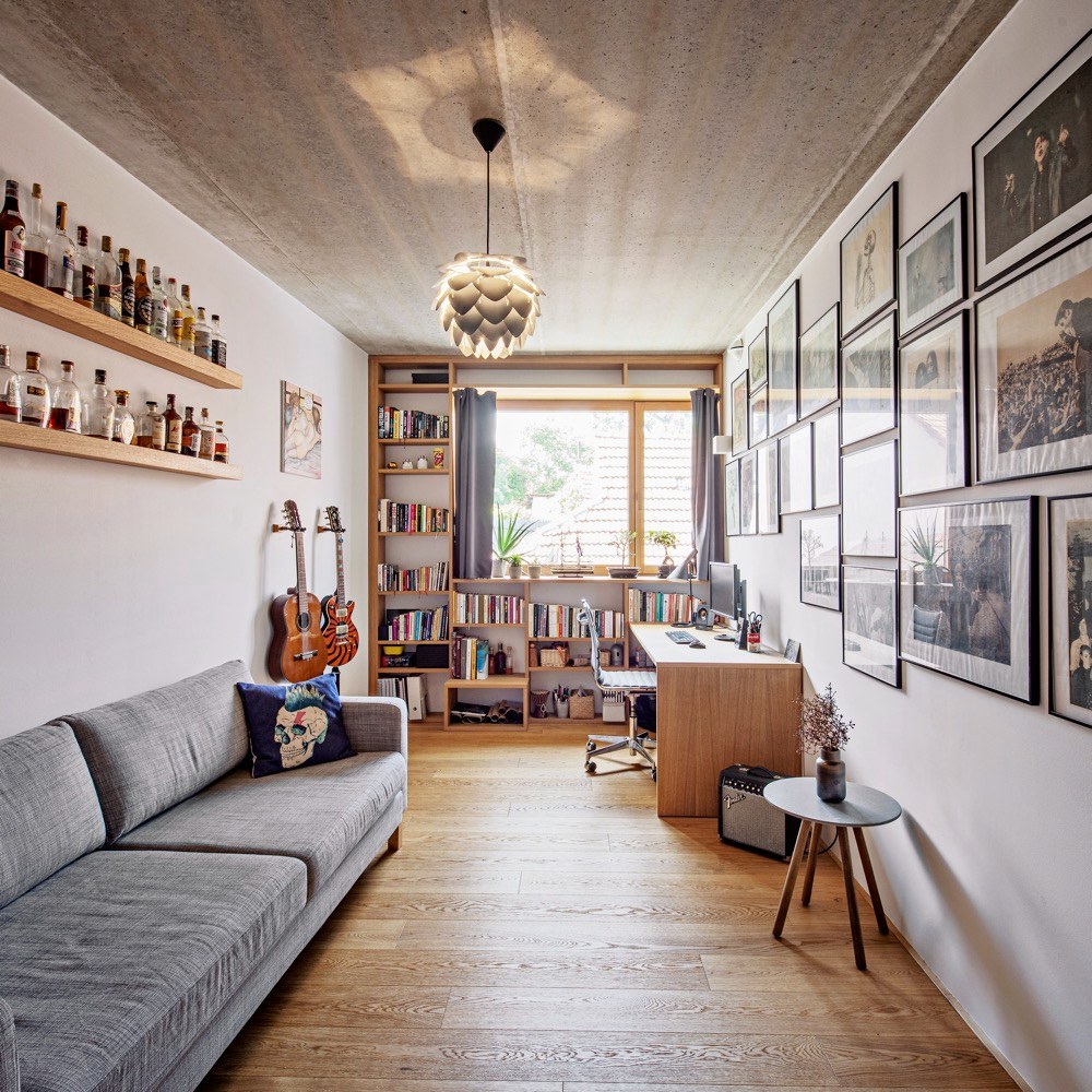 Parcela, na které dům stojí, se nachází ve staré zástavbě v Brně-Bystrci. Rozloha pouhých 173 metrů čtverečních ve svažitém terénu s pětimetrovým převýšením představovala výzvu hned od počátku. Do toho by si jen tak někdo netroufl. Ale protože je Veronika architektka, přetavila zdánlivou nevýhodu v přednost, která definuje charakter celého domu.