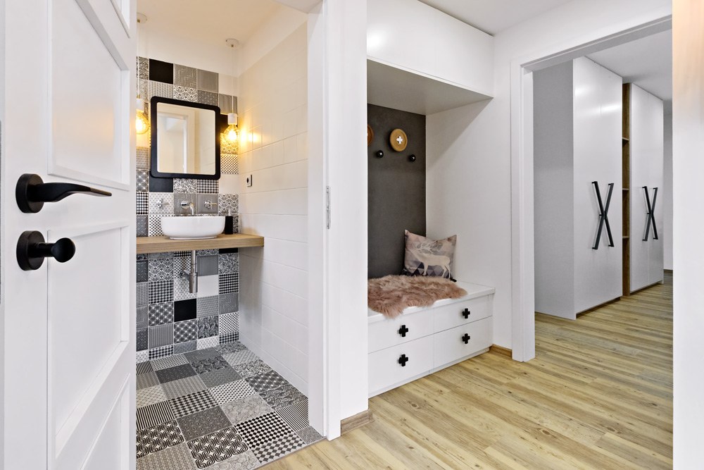 Dle mého už je teď skandinávského stylu všude až moc, ale bylo to majitelčino přání, tak jsem se aspoň snažila k tomuto stylu přidat ještě něco osobitějšího. Dům sám o sobě je velmi hezky řešený a díky navrženým úložným místům v šatně, skříním v chodbě, technické místnosti a spíži umožňoval více prostoru pro kreativitu.