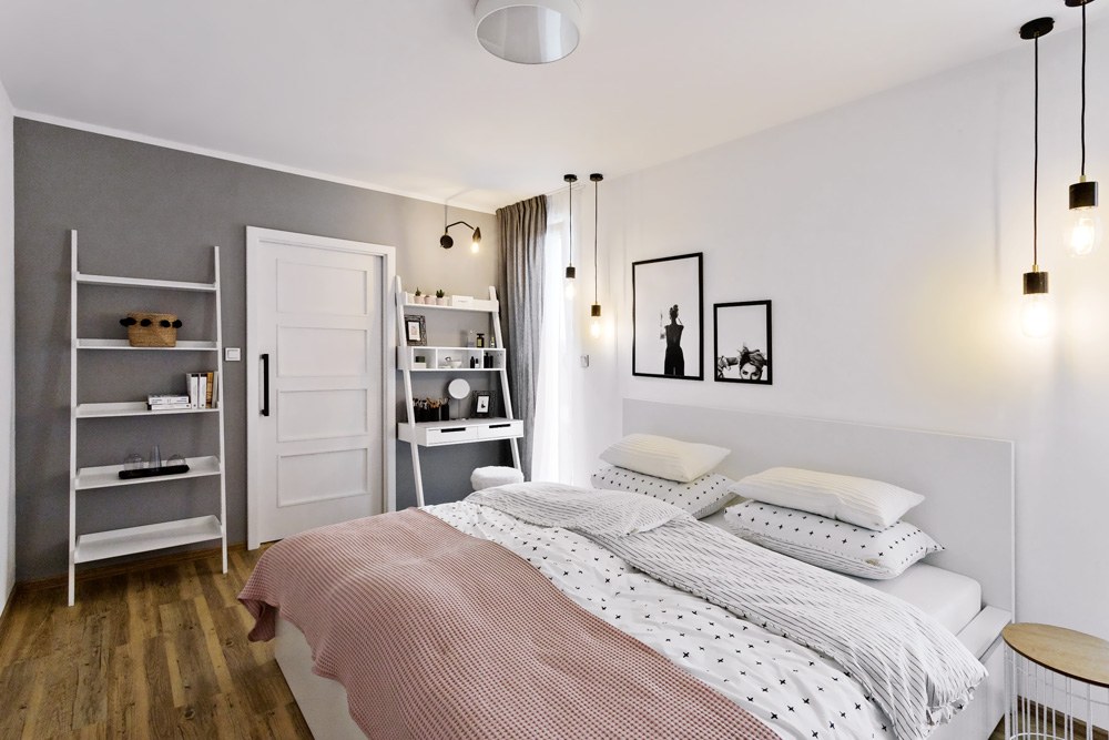 Při barevném řešení interiéru jsem vycházela z požadovaného skandinávského stylu, tedy z kombinace dřeva, bílé a šedé barvy a z akcentů černé. Dřevo zastupuje vinylová podlaha s dřevěným dekorem, masivní deska jídelního stolu a drobné dekorace, bílá je výmalba, kuchyňská sestava a nábytek v ložnici a v předsíni.