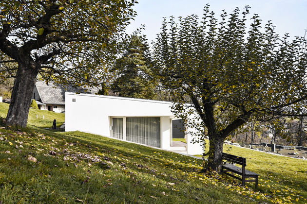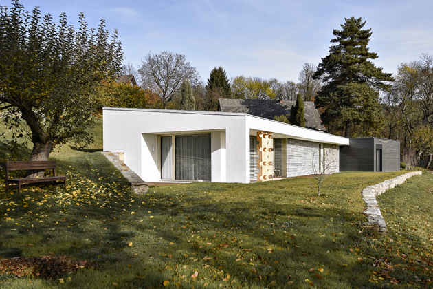 Protože se parcela nachází na hranici pásma, kde podle územního plánu nad ní mohou být stavěny jen domy venkovského charakteru, ale pod ní už mohou stát městské domy, mohl vzniknout moderní dům. Zároveň jsme ale chtěli, aby dům navazoval na obě tyto stylové linie a přirozeně zapadl do terénu. Usazení bungalovu také hodně vycházelo z morfologie terénu, kterou jsme chtěli dodržet.