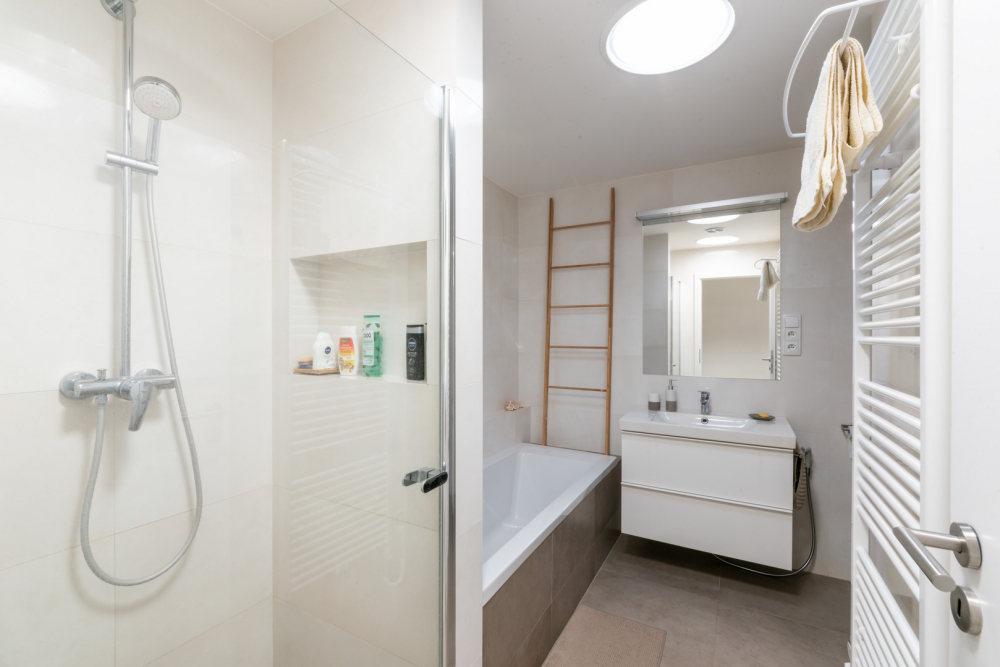 Vytápění: kondenzační plynový kotel, podlahové vytápění ve všech místnostech, v koupelně elektrický otopný žebřík
