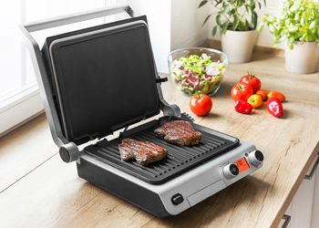 Praktickou variantou elektrických grilů jsou jejich malé verze, které umožňují grilování v domácím prostředí. V nabídce jsou jednodeskové typy nebo sklápěcí grily se dvěma pečicími deskami.